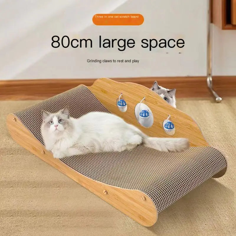 Each purchase includes three free Bell balls to keep your cat entertained for hours. Whether they're scratching, lounging, or playing, this cat scratching board will quickly become their favorite spot in the house.